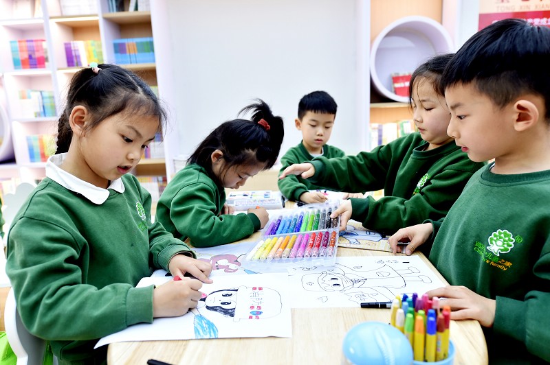 近日,几名小朋友在南漳县党史学习教育基地二楼少年儿童党史学习教育“活动专区”,专心绘制“心目中的英雄”。