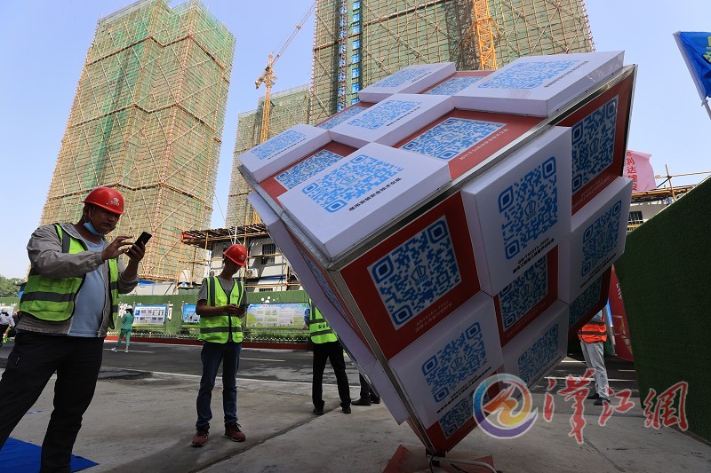 8日,在襄阳碧桂园·城市之光项目现场举行的2021年襄阳市安全文明施工观摩会现场,来自各县(市)区的“住建人”实地了解“安全文明施工”标杆工地上各二维码相关的具体内容。近年来,我市许多施工现场采用智慧系统安全覆盖,有效提高了工程执行的效率,使工程任务的安排更加科学合理,让各个环节衔接得更为紧密。