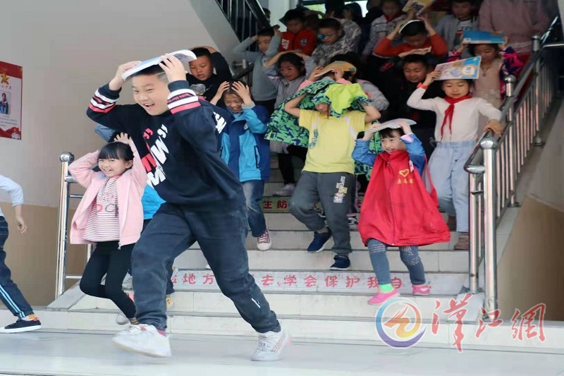 5月7日上午,樊西实验小学的学生们在演练应急逃生。