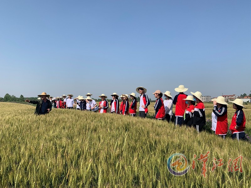 当天,师生们走进湖北腾龙生物技术有限公司小麦繁育基地,聆听该公司副总经理陆德海讲解去除小麦田间杂株的技术要领。