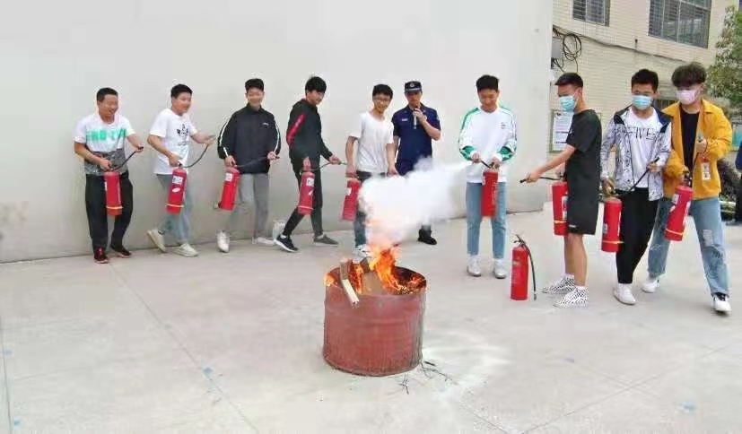 消防官兵们在操场上设置了着火点进行灭火演习,由具备有消防演练知识及实践操作技能的消防官兵为同学们讲解灭火器的使用方法,并进行灭火示范。学生们也拿起灭火器学习如何灭火。