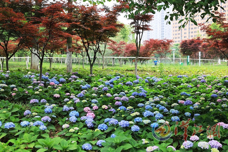 5月13日,紫贞公园5000余株“无尽夏”绣球花在林间盛开。市紫贞公园管理处今春开展景观提升改造工程,进一步提高市民满意度。