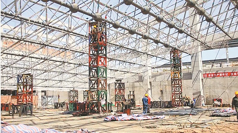 近日,南漳高铁站钢网架结构顶升工作正式启动,这标志着站房主体结构开始封顶,高铁站建设进入倒计时阶段。