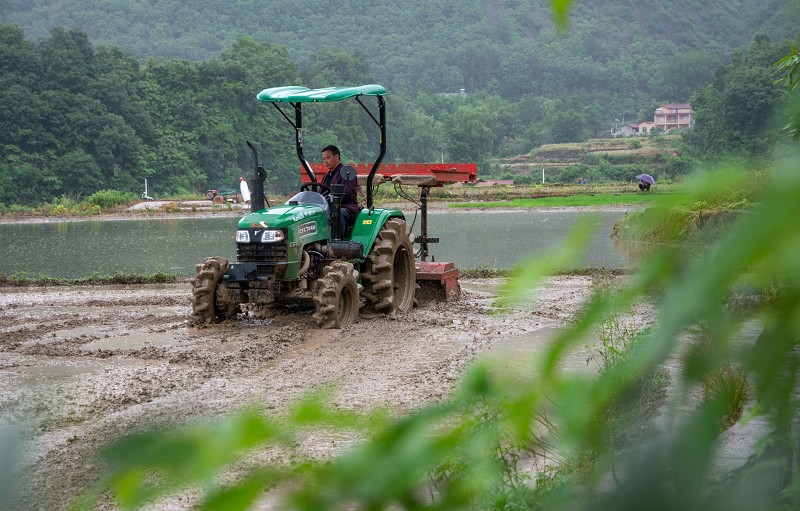 5月15日,保康县歇马镇茅坪村,村民驾驶拖拉机平整稻田,准备插秧。初夏时节,保康县各地夏耕夏播全面铺开,田间地头一片忙碌景象。特约通讯员 陈泉霖 通讯员 陈先瑞 摄