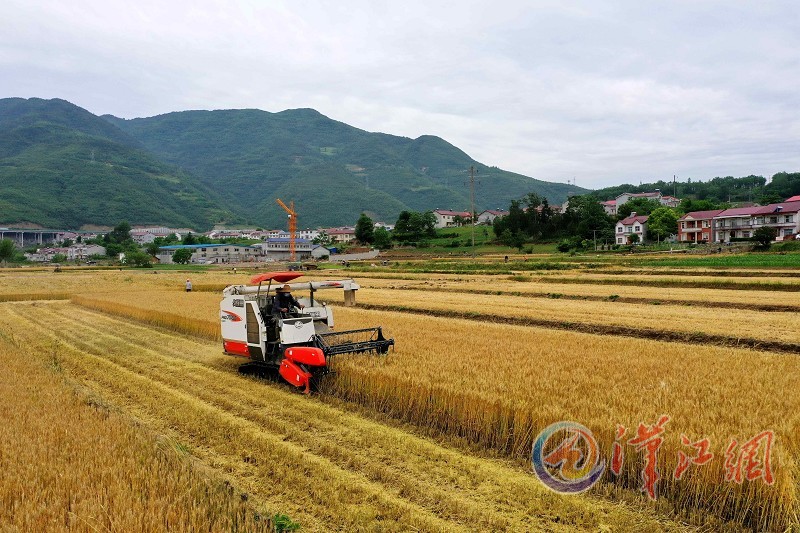 5月21日,在保康县马桥镇中坪村,村民驾驶收割机收割小麦。近日,全县各地小麦进入成熟期,当地农民抢抓晴好天气收割小麦,确保颗粒归仓。
