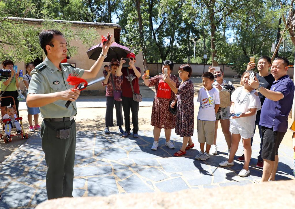 在西柏坡旧址,讲解员韩向飞为游客进行讲解(2019年8月30日摄)。新华社记者杨世尧摄