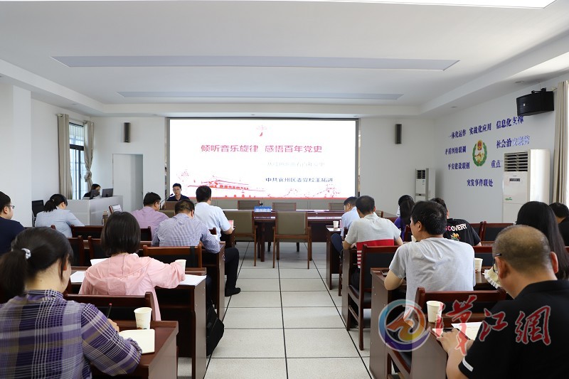 近日,在区委政法委开展的党史学习教育专题课中,区委党校王拓进老师以音乐的视角讲述党的奋斗历程,通过听、讲、唱、谈等形式,让广大党员回顾历史,不忘初心。通讯员 徐登峰 温菲 摄