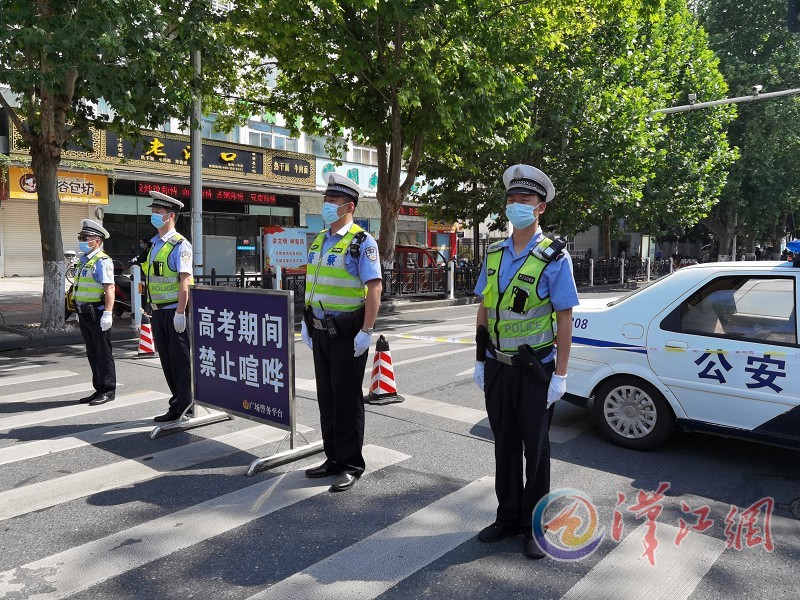 6日下午,人民广场警务平台民警在解放西路襄阳一中门前路段,开展“考生看考场”高考安保模拟演练。