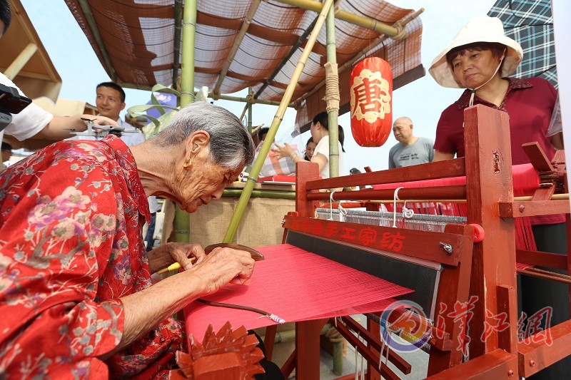6月10日,2021年湖北省“文化和自然遗产日”非遗宣传展示主会场活动在襄阳唐城景区举行。来自全省其他市(州)的汉绣、孝感米酒制作技艺、恩施玉露制作技艺等30多个非遗项目,和襄阳市70多个非遗项目一起参加了展示,为市民带来非遗盛宴。