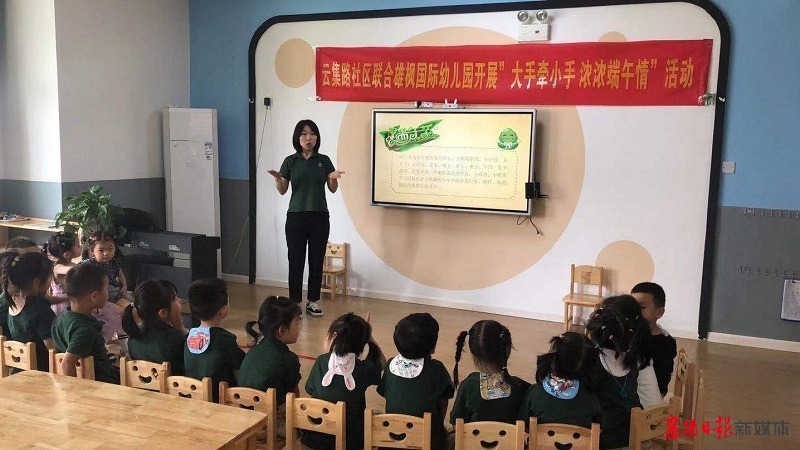 6月11日上午,云集路社区在辖区雄枫国际幼儿园开展“大手牵小手 浓浓端午情”活动。