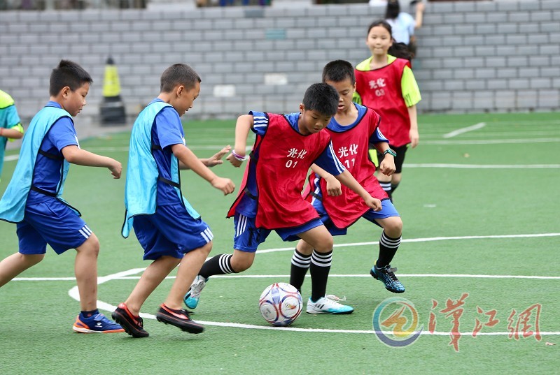 7月5日,老河口市第二小学学生参加暑假课后托管足球课。当日,该校家长委员会与襄阳市锐铭足球俱乐部联合举办的夏令营开营,该校200多名学生将在接下来一个月时间内,参与学校暑假课后托管服务开设的足球、篮球、乒乓球、绘画、科普等课程。暑假期间,老河口市针对义务教育学校推行暑假课后托管服务,在学校指导下由家长委员会具体组织实施,家长委员会和学校与融合单位签订三方协议,由专业协会等有资质的机构到学校参与暑假课后托管服务。 全媒体记者杨东摄