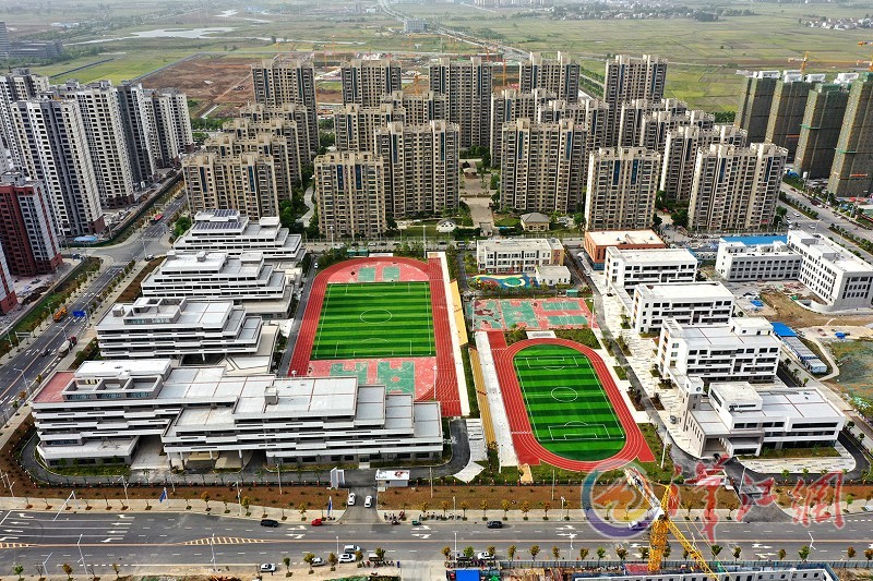 这是近日记者在东津新区拍摄的新市民公寓配套的学校项目——东津新区第二实验小学、襄阳东津镇春晓幼儿园、东津新区浩然中学。整个学校项目总建筑面积4.83万平方米,其中春晓幼儿园是6个班,目前已投入使用,东津新区第二实验小学和浩然中学今年9月投入使用。第二实验小学一年级到六年级共36个班,每个班计划招生45人,6个年级36个班今年计划招生1600人;浩然中学是七年级到九年级共36个班,3个年级36个班今年计划招生1500人。