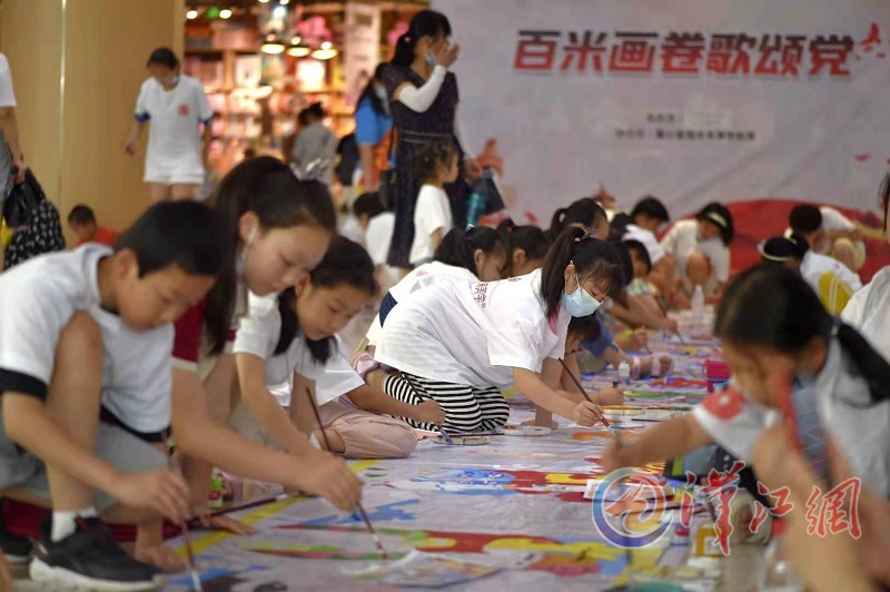 为激发少年儿童爱党爱国之情,传承红色基因,7月1日上午,东风街道办事处综合文化服务中心组织开展“童心向党迎百年,百米画卷歌颂党”庆祝中国共产党建党100周年活动,100余名来自童心童画未来美学教育机构的少年儿童现场创作百米画卷。