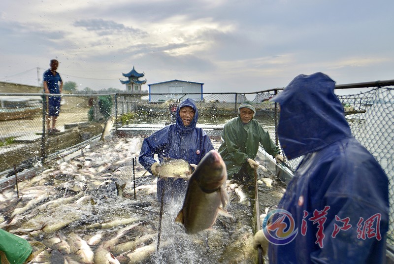 7月7日,枣阳市杨垱镇小黄河水库夏季捕鱼获丰收,首网捕获10万多斤白鲢、花鲢,当日销往成都、重庆等地。