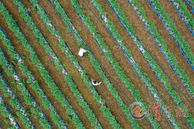 7月3日,在保康县马良镇赵家山村,村民在蔬菜地里劳作。炎炎夏日,全县各地农民忙于各种农作物的田间管理,处处呈现繁忙的劳作景象。