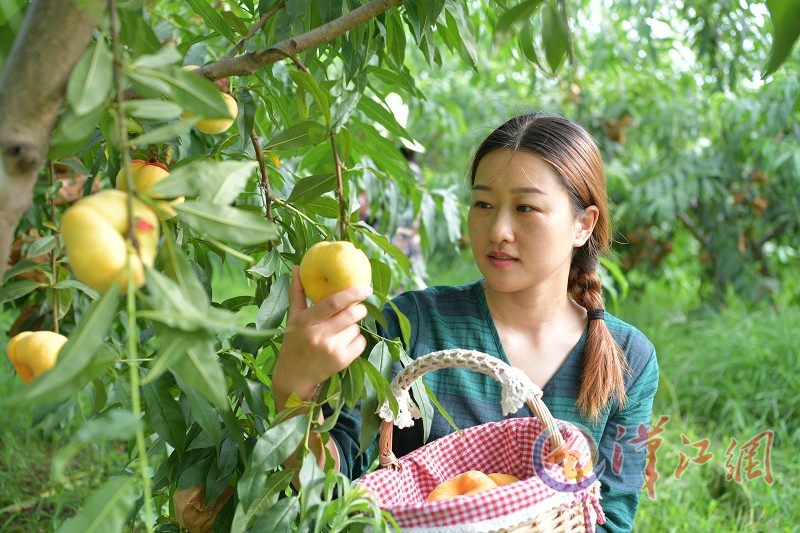7月13日,在襄城区卧龙镇清风苑家庭农场,游客体验采摘白如玉桃的乐趣。近期,卧龙镇数千亩21个品种的桃子陆续进入成熟期,当地以特色桃产业带动乡村旅游,助推乡村振兴。