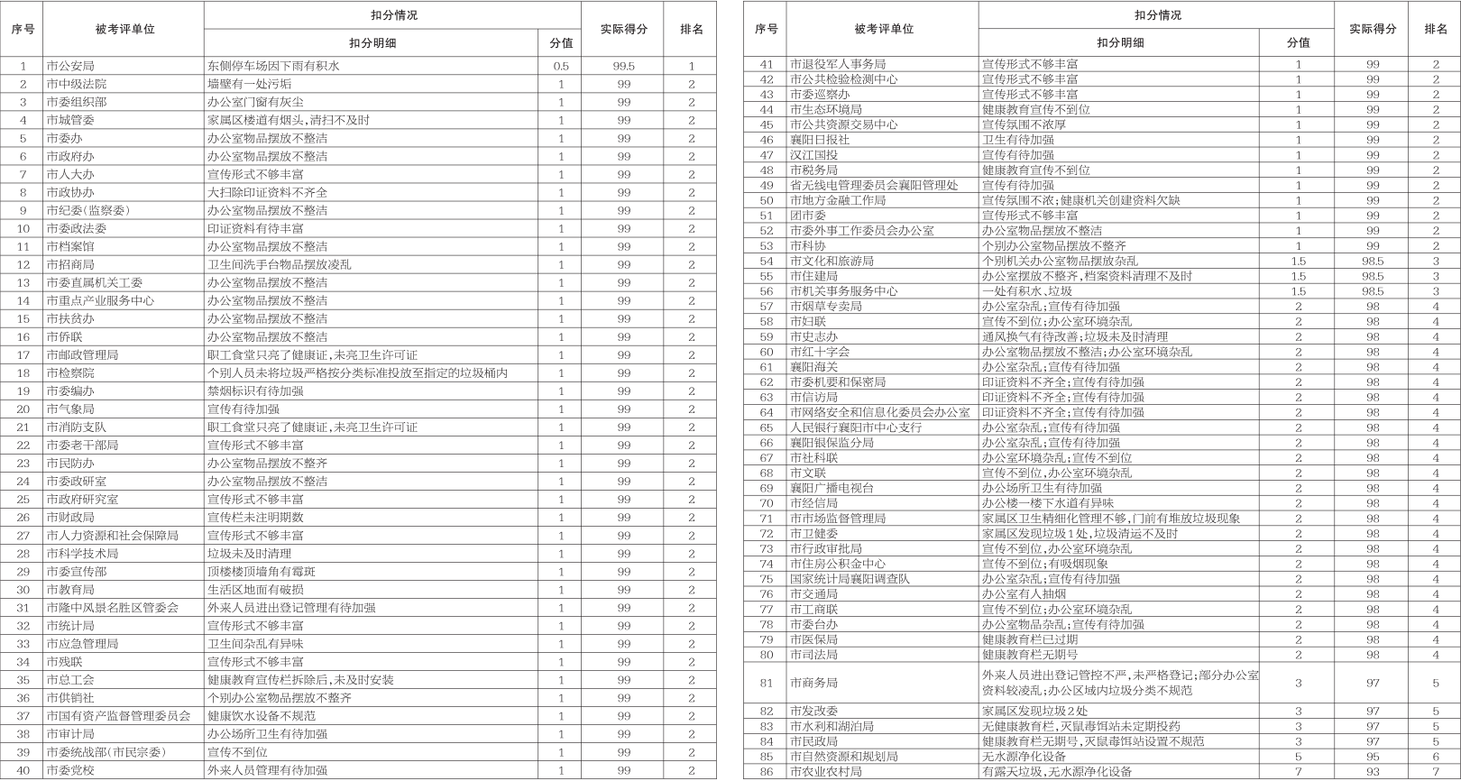市直机关单位2021年第二季度爱国卫生运动检查考评情况明细表