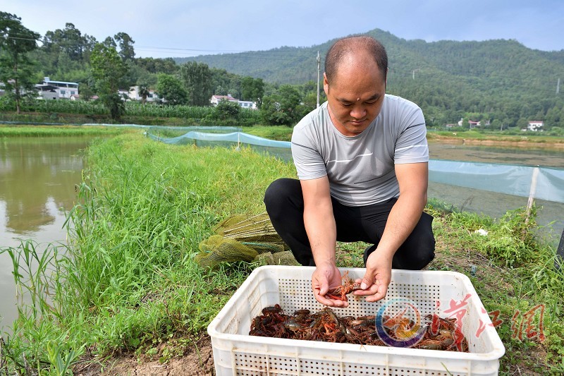 7月17日,在保康县马良镇西坪村龙虾养殖基地,虾农在分拣刚捕获的小龙虾。近年来,西坪村依托当地青山绿水的资源优势,发展特色产业,引进淡水小龙虾养殖,助推村民致富奔小康。
