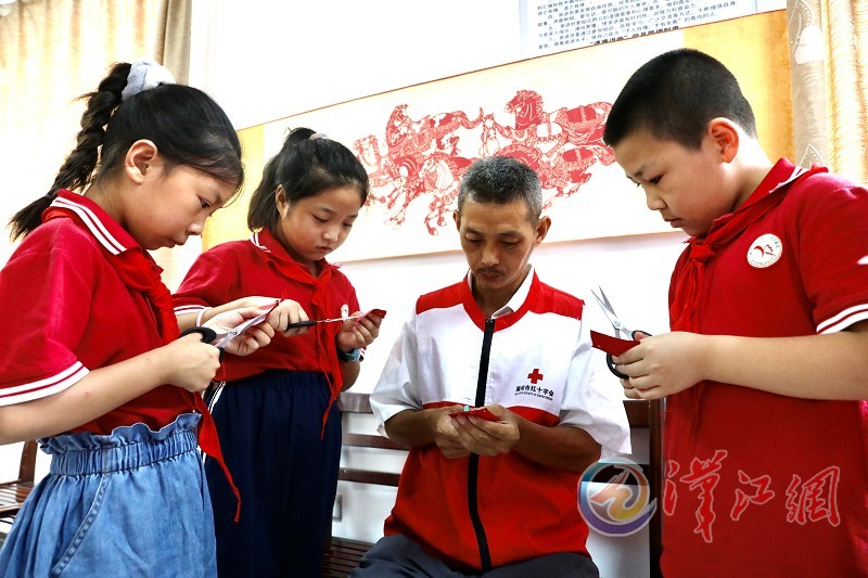 7月28日,人民路小学学生在大庆西路社区学习剪纸技艺。当日,大庆西路社区邀请辖区剪纸爱好者,为学生们讲解剪纸的起源和常用技巧,并进行实际操作,让学生们近距离感受剪纸的魅力。全媒体记者 李旭晖通讯员 田富艳 高华云 摄