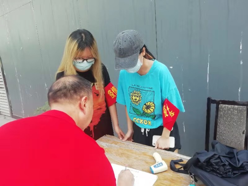 每当访客进入小区,志愿者耐心地引导他们填写访客记录、测量体温并引导他们扫描防疫健康码。酷暑难当,但是居民都十分配合大学生志愿者的工作。不少居民路过我们的疫情防控点,都频频向我们点头以表感谢。还有的居民主动走到我们这边量体温、询问疫情防控知识……