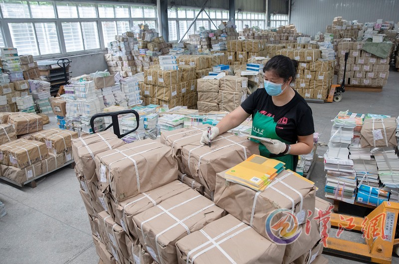 8月18日,在新华书店储运部,工作人员正在仓库整理教材。新学期开学在即,新华书店抓紧做好中小学及大学教材的分类和分发工作,确保秋季开学学生及时领到新书。
