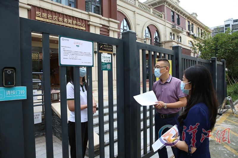 8月17日,在位于襄城区滨湖路的恒泰悦居社区长者照护中心,恒泰健康公司工作人员检查该中心疫情防控工作。目前,按照疫情防控要求,恒泰悦居社区长者照护中心实施封闭式管理,坚决筑牢养老机构安全防线,保障老人们健康安全。恒泰悦居社区长者照护中心是汉江国投全资子公司恒泰健康公司投资的首家社区嵌入式养老机构项目,入选第五批全国居家和社区养老服务改革试点。 全媒体记者 杨东 通讯员 敖明亮 陈欣沛 摄