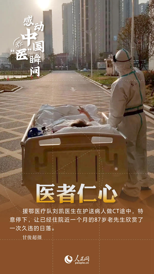 医者仁心,从来不是说说而已。复旦大学附属中山医院援鄂医生刘凯在护送患者做CT的途中,停下来,让已经住院近一个月的87岁老人欣赏久违的落日。