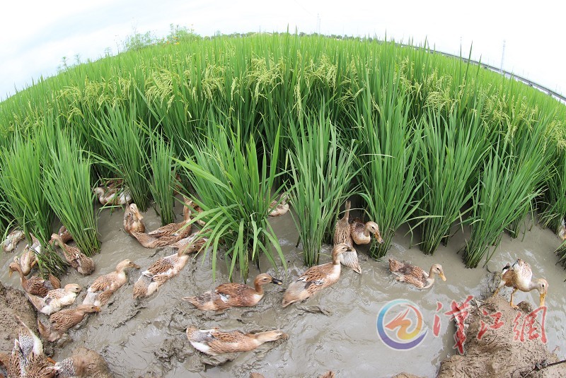 8月17日,在襄州区张家集镇的湖北绿神农业公司稻田里,鸭子正在觅食。该公司4年前开始探索“稻鸭共作”生态种养模式,今年在700多亩稻田里养殖8000多只鸭子。这些鸭子能治虫、增肥、活水、除草,每亩可以节约相关成本160元,养鸭可以增收220元,仅这两项每亩就可增收380元以上。 全媒体记者王虎 江旭东摄