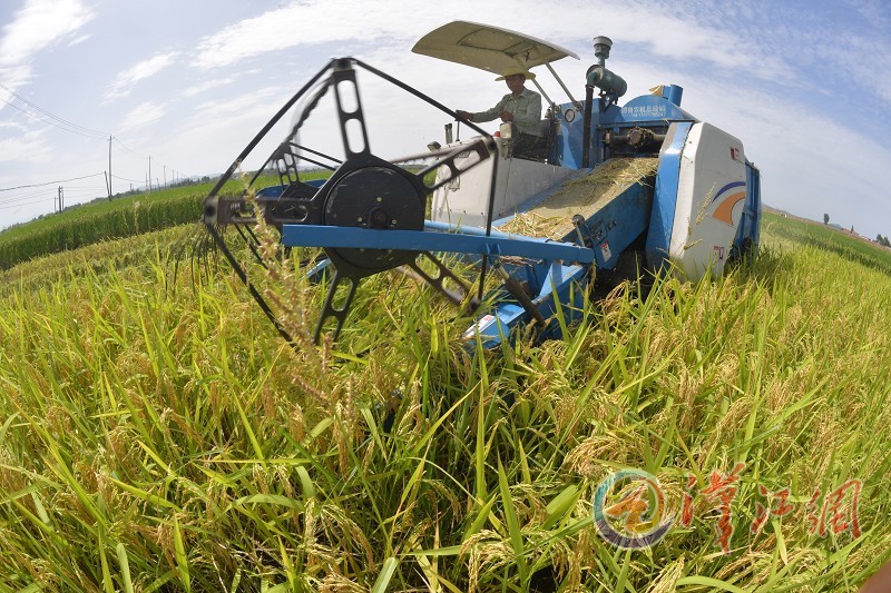 8月24日,在襄城区尹集乡庞岗村5组,农民关成涛驾驶收割机收割自己种植的早稻。据介绍,今年我市水稻种植面积为300万亩,目前早稻成熟,开始收割。 全媒体记者安富斌摄