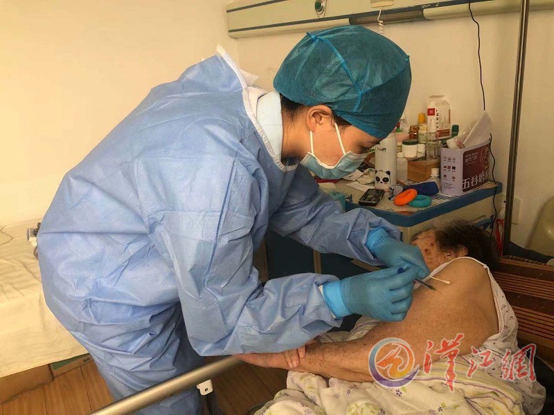 护士上门为福利院的老人打新冠疫苗 通讯员张欢强摄