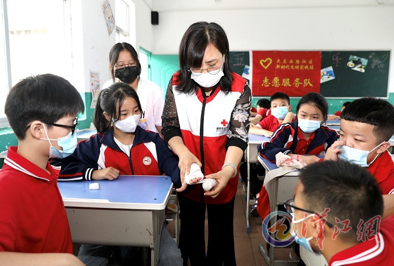 9月2日,全市中小学生开学。当日,大庆西路社区联合樊城区红十字心理援助志愿服务队在人民路小学开展了“开学第一课讲安全”主题活动。活动现场,志愿者通过趣味小实验,互动问答的形式给同学们讲授了烧烫伤小常识、海姆立克急救法、止血包扎等安全知识。