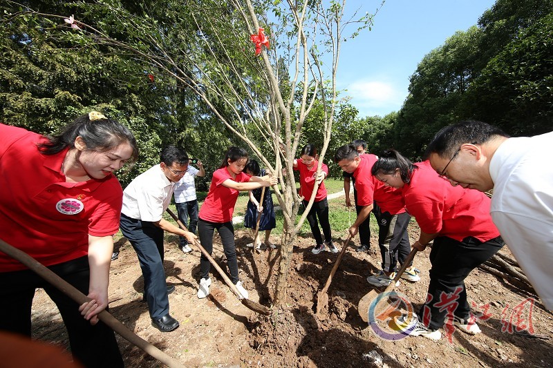 9月9日,湖北文理学院“格桑花”赴藏支教团队第十二批5名队员出征西藏,赴西藏琼结县开展为期4个月的支教活动。图为支教队员出征前与学校领导在校内格桑花海共同种植象征民族团结一家亲的石榴树。 全媒体记者 杨东 摄
