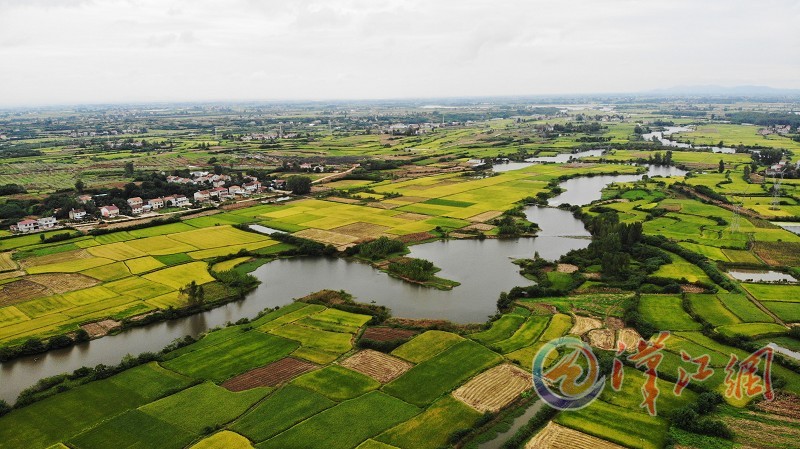 9月6日拍摄的襄城区尹集乡尤河村稻田(无人机照片)。眼下,我市300万亩水稻丰收在望,金黄色的稻田层层叠叠,美不胜收。