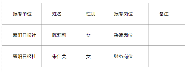 附:《襄阳日报社公开招聘拟聘用人员名单》