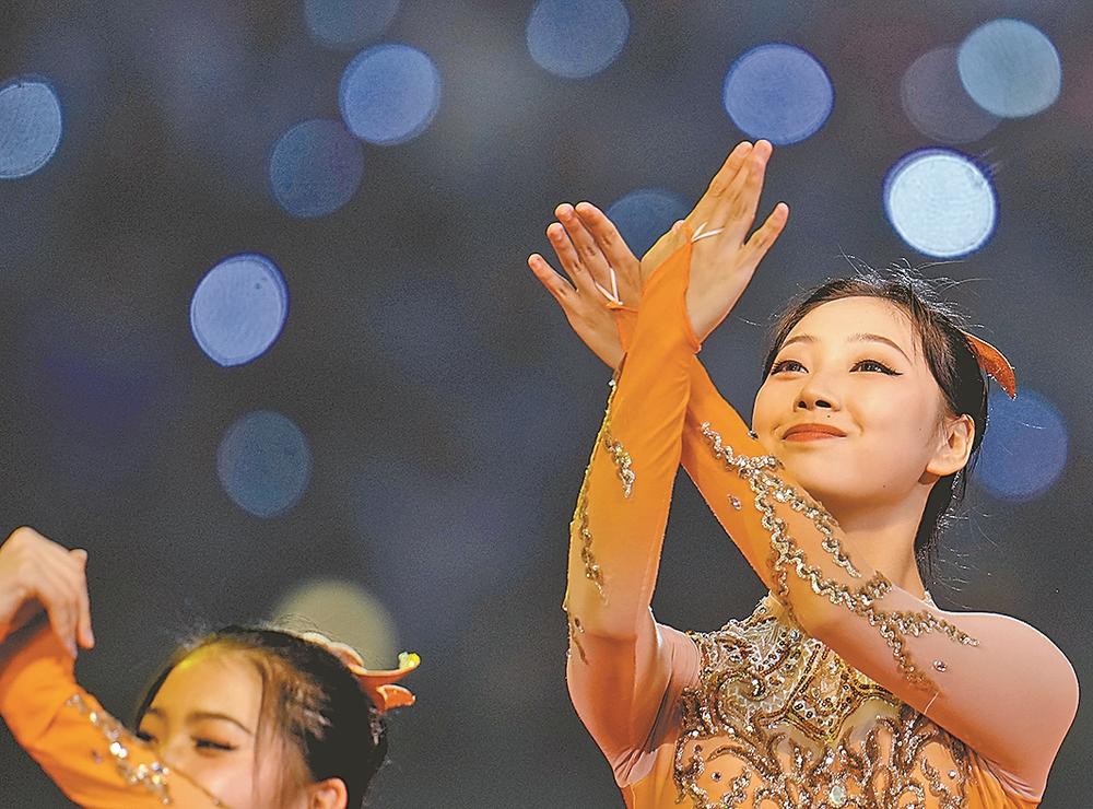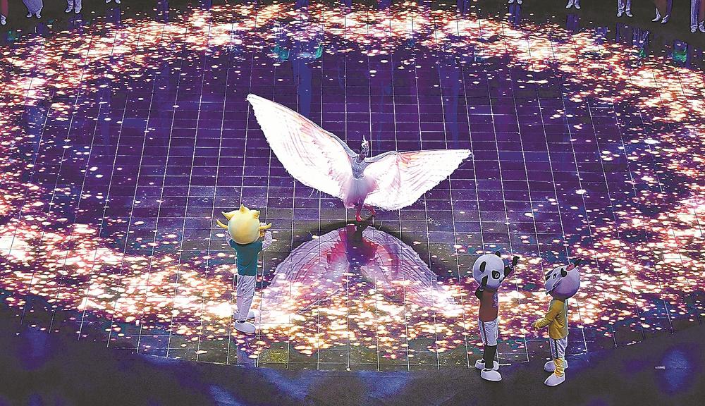 9月27日,第十四届全运会吉祥物在闭幕式上表演。