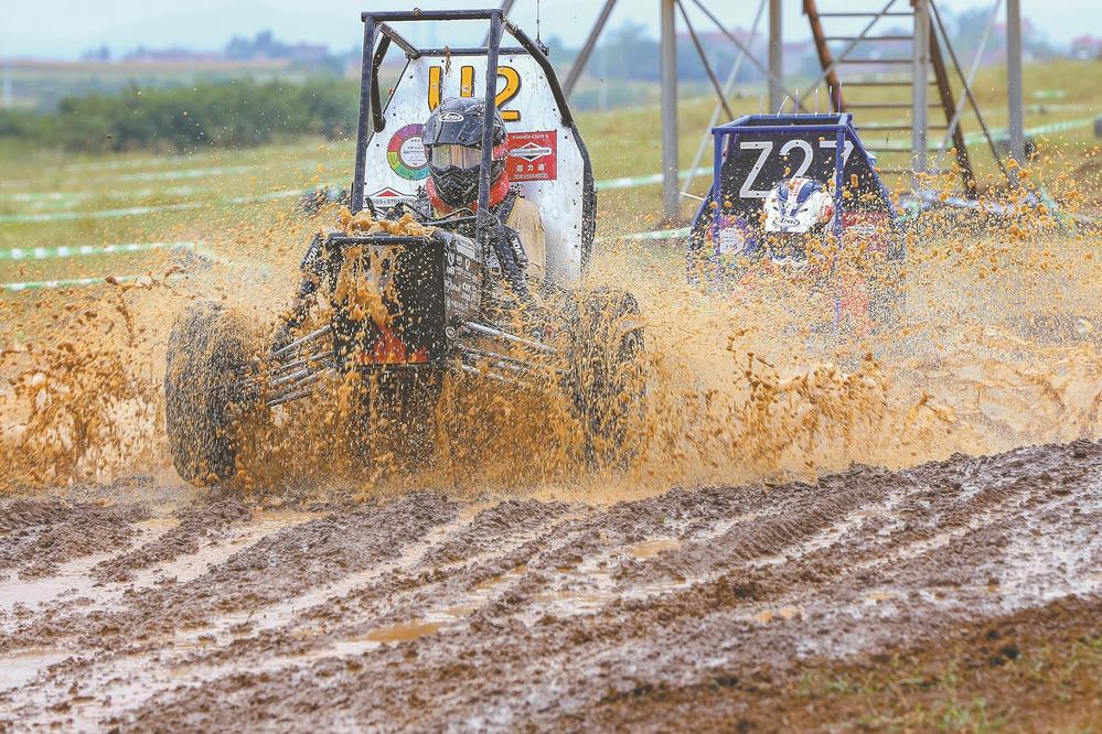 9月28日,在2021巴哈大赛襄阳站的耐力比赛中,大学生驾驶着自己设计、制造的小型越野车驰骋在赛道上。