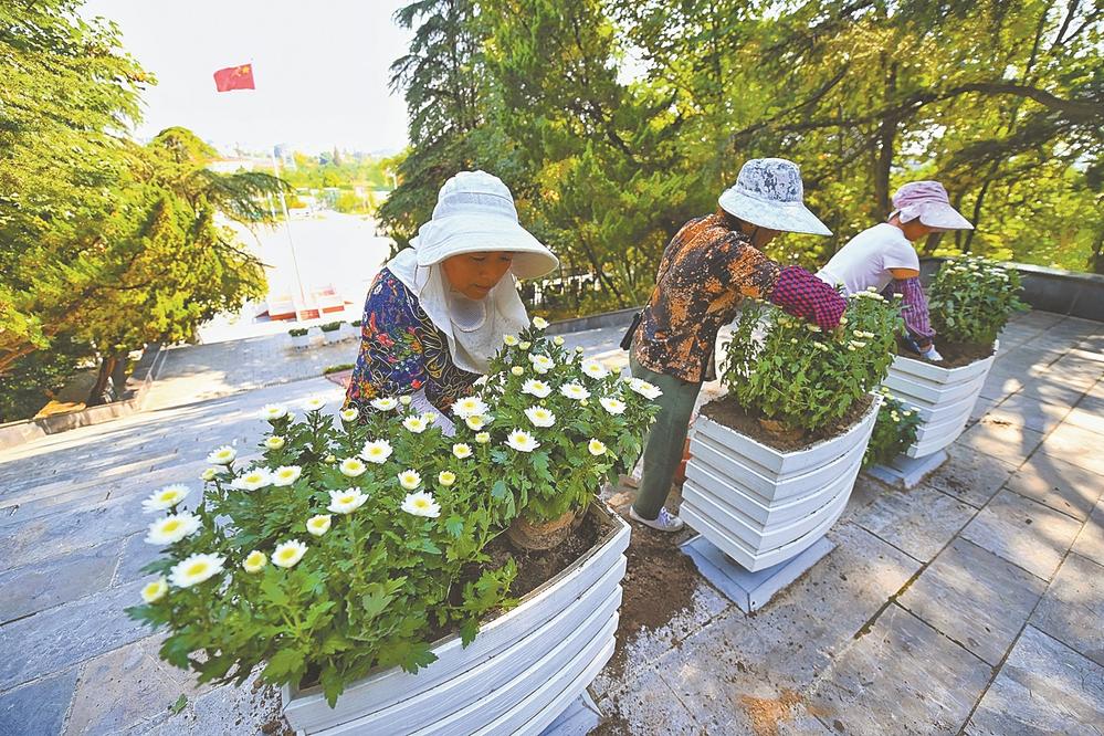 为迎接国庆节的到来,市住建局绿化管理处在南湖广场、岘山文化广场、滨江大道等处栽种、摆放花草,营造美好的城市环境与祥和的节日氛围。 全媒体记者谢勇 通讯员陶真乐摄