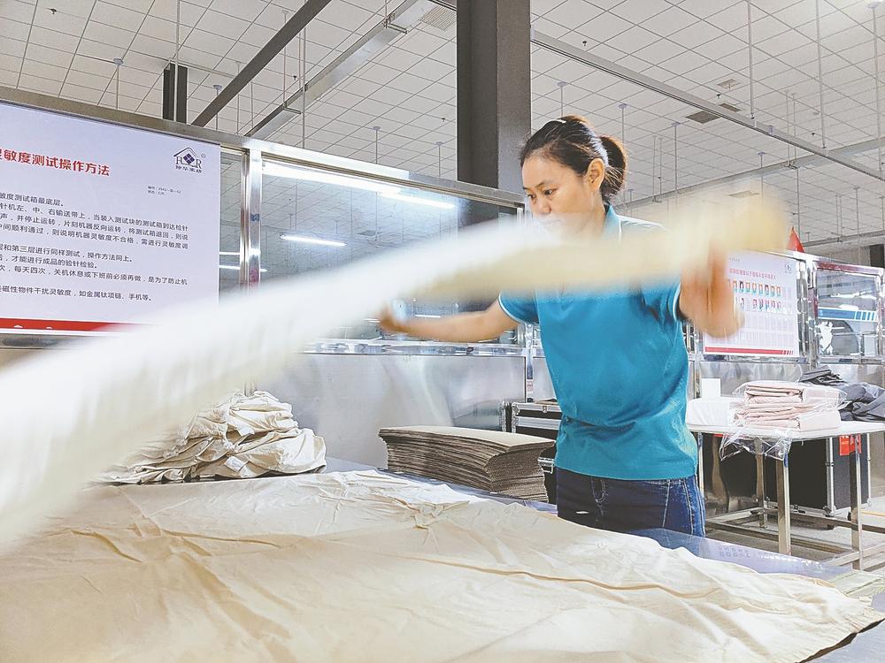 10月6日,际华3542公司家纺分公司员工正在忙生产。