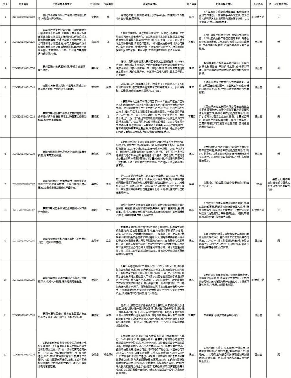 第二轮第四批中央生态环境保护督察群众信访举报转办和边督边改公开情况一览表(第二十九批 2021年10月5日)