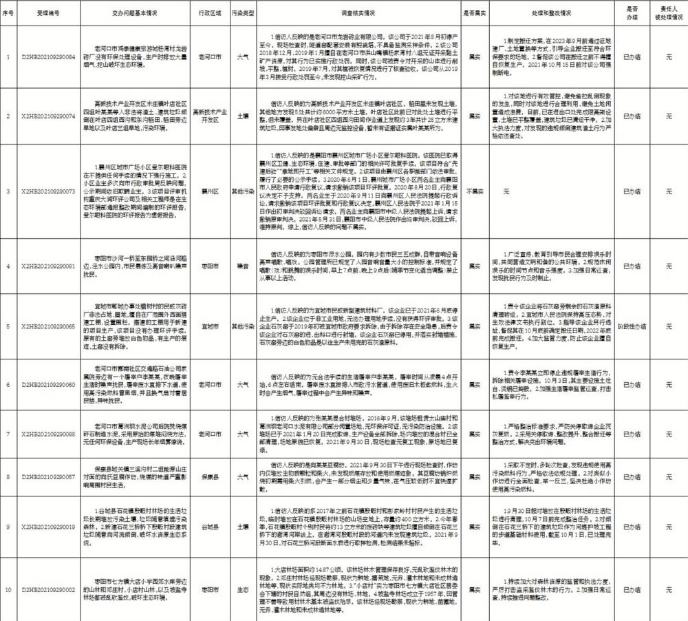 第二轮第四批中央生态环境保护督察群众信访举报转办和边督边改公开情况一览表(第三十批 2021年10月6日)