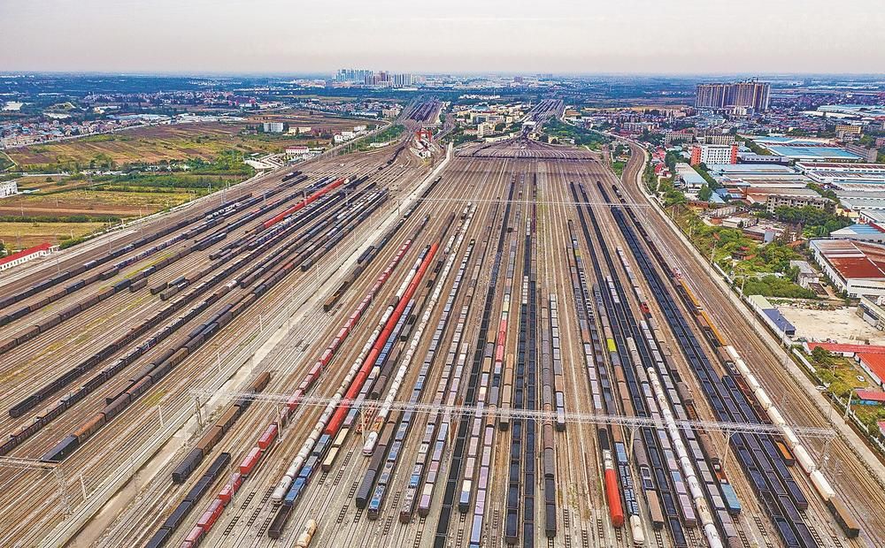 10月17日拍摄的襄阳北编组站。襄阳北编组站位于襄渝、焦柳、汉丹、浩吉四条铁路干线交会处,是北煤南运主要通道上的重要咽喉,每天超过10万吨煤炭在此集结、中转、外运。