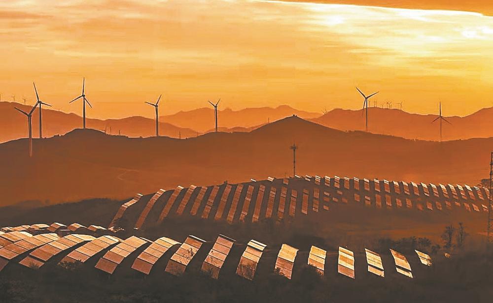10月17日,枣阳市迎驾山光伏、风电场霞光绚丽。2015年以来,枣阳市政府与华润湖北分公司在太平镇康河村一带的荒山上建设光伏发电3000余亩,风力发电机60组,年发电2亿度。山区道路畅通了,荒山变美了,绿色能源助力附近37个村发展振兴。 通讯员李明摄
