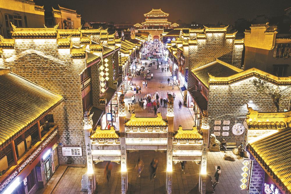 10月26日拍摄的北街夜景。据了解,湖北省文化和旅游厅、湖北省发改委10月25日联合发布《首批湖北省旅游休闲街区名单的通知》,认定襄阳市襄城区北街等10家单位为首批湖北省旅游休闲街区。北街位于襄阳城中心十字街之北,北连古城墙临汉门,南接昭明台。它是襄阳古城的一个重要“符号”,也是襄阳作为国家历史文化名城的一张“名片”。