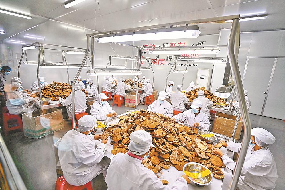 10月19日,嘉达生物科技有限公司车间正在进行农产品精深加工。该公司主要以食用菌、中药材、茶叶、果蔬植物等农产品为原料,进行生物提取、精深加工,开发功能性食品、保健品、医药、美容化妆品等,今年公司出口逆势上扬,产品远销日本、韩国、新西兰等国家。 全媒体记者 谢勇 摄