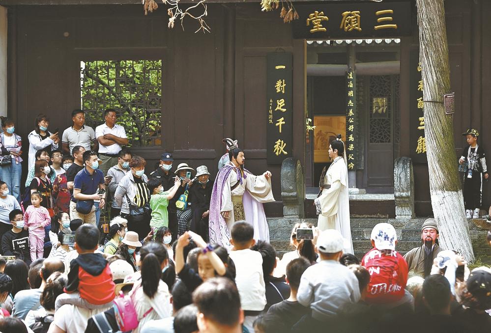 “诸葛大名垂宇宙,隆中胜迹永清幽。”这幅挂在隆中武侯祠里的对联,由董必武题写,道出了隆中胜迹的灵魂。“山不高而秀雅,水不深而澄清”,隆中却地灵而人杰,孕育出一位中国传统文化忠臣与智者的杰出代表,“鞠躬尽瘁、死而后已”精神的先贤圣哲——诸葛亮。孔明青少年时在此躬耕,隐居求学,终成天下奇才。如今,庄重肃穆的武侯祠内,柏树森森的三顾堂前,高耸云端的腾龙阁上,禅意盎然的老龙洞边,处处回荡着先生那伟岸的身影,时时回响着“三顾频烦天下计,两朝开济老臣心”的赞叹。古隆中,正是那份延续千年的吸引,那份经久不衰的魔力,那份荡涤心灵的抚慰,那份点亮生命的光芒。“江山留胜迹,我辈复登临”,用在此处,也非常贴切。今天,到访隆中的游客,如果知道苏东坡也曾来此旅游,还发出了这样一顿感慨,一定会心同此景,景同此心的。