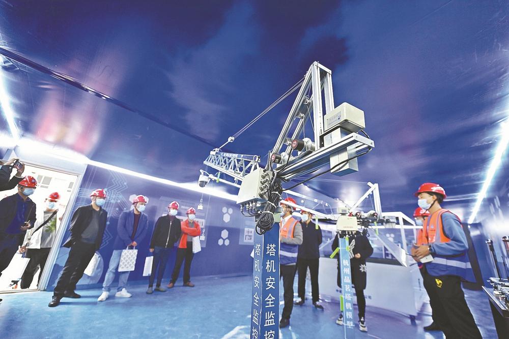 11月5日,市建设工程安全监督人员在样板工地观摩安全生产。