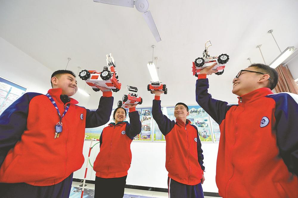 11月9日,学生在市诸葛亮中学展示车模。据了解,今年秋季开学以来,我市积极落实“双减”政策,各学校结合学生的兴趣爱好,开展内容丰富、形式多样的课外活动,满足学生多样化需求,促进学生全面发展。
