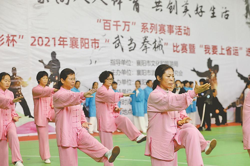 11月6日,以“崇尚人人体育 共创美好生活”为主题的2021年“百千万”襄阳市全民健身赛事活动——襄阳市武当拳(械)比赛暨“我要上省运“选拔赛在市体育馆举行。活动由市文化和旅游局指导,市武当拳法研究会主办,市体育中心协办。400多名选手参加了拳(械)96个项目的比赛和展演。