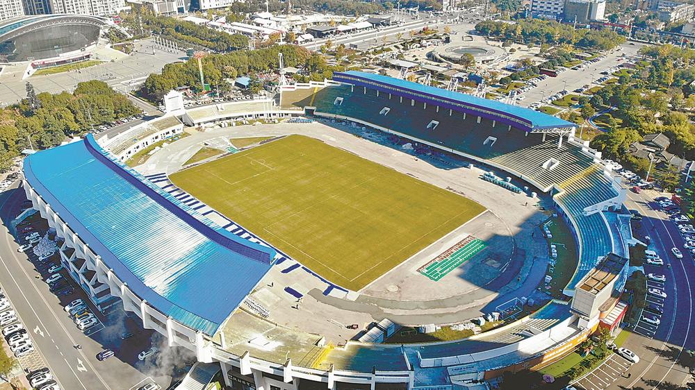 11月14日航拍的正在维修改造的市体育场。