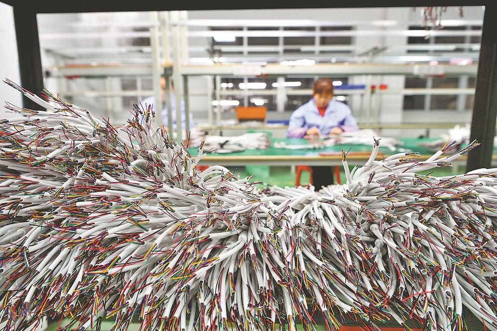 11月19日,在保康县歇马镇河东村一微工厂,村民在加工电子产品。